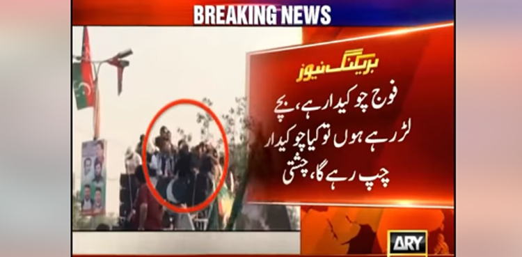 اسلام آباد: ایکس سروس مین کے لیفٹننٹ جنرل ریٹائرڈ فیض چشتی کا کہنا ہے کہ فوج کا کام چوکیدار کا ہے ، دو بچے لڑتے ہیں تو کیا چوکیدار چپ رہے گا۔