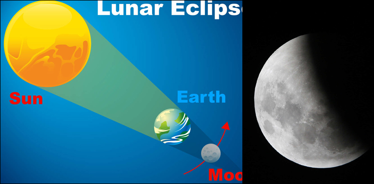 چاند اور زمین کا سایہ سورج کے درمیان میں سال میں دوبار آتا ہے اور اس کا سایہ ایک دوسرے پر پڑتا ہے، چاند پر سایہ پڑتا ہے تو چاند گرہن اور سورج پر پڑتا ہے تو زمین پر سورج گرہن دکھائی دیتا ہے۔