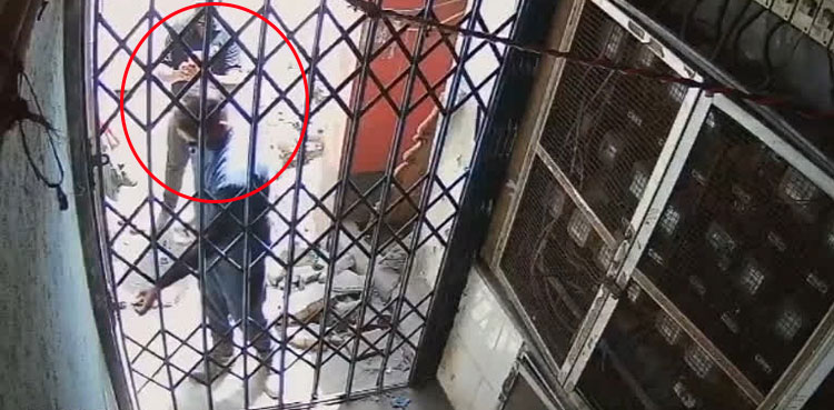 واقعے کی سی سی ٹی وی فوٹیج بھی سامنے آگئی، جس میں دیکھا جاسکتا ہے کہ کچھ افراد عمارت کا تالا توڑ کر بلڈنگ میں داخل ہونے کی کوشش کررہے ہیں لیکن لوگوں کی آہٹ سے ملزمان فرار ہوگئے۔