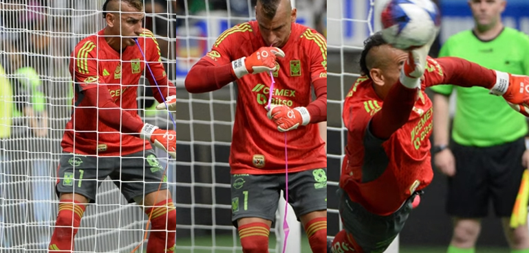 جنوبی امریکا میں کھیلے جا رہے مقامی لیگس کپ میں میکسیکو کی ٹیم ٹائیگریس نے وینکوور کے خلاف میچ میں میکسیکن گول کیپیر نے دوران میچ جادوگروں کی طرح غیر معمولی عجیب وغریب حرکت کی جس کو دیکھ کر نہ صرف اسٹیڈیم میں موجود شائقین حیرت زدہ رہ گئے بلکہ حریف ٹیم کے کھلاڑی بھی ششدر رہ گئے اور حریف ٹیم کے کھلاڑیوں کی دھیان بھٹکا کر اپنی ٹیم کے خلاف یقینی گول بچا لیا۔