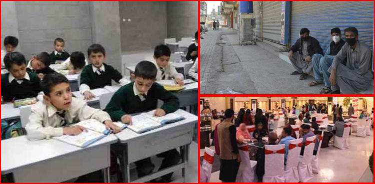 صوبے میں کریانہ، بیکری اور فارمیسی پابندی سے مستثنیٰ ہوں گی۔ حکومت نے پیر سے شادی ہالز اور دیگر تقریبات پر بھی پابندی کا فیصلہ کیا ہے۔