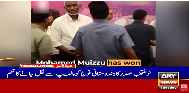 مالدیپ کے نومنتخب صدر ڈاکٹر محمد معیزو نے بھارتی فوج کو ملک سے نکل جانے کا حکم دے دیا۔