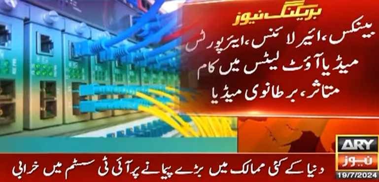 برطانوی میڈیا کے مطابق دنیا کے کئی ممالک میں بڑے پیمانے پر آئی ٹی سسٹم میں خرابی پیدا ہوگئی ہے جس کے باعث پینکس، ایئر لائنز، ایئرپورٹس، میڈیا آؤٹ لیٹس میں کام شدید متاثر ہوا ہے۔