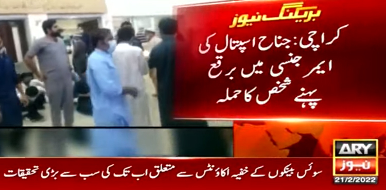 کراچی کے جناح اسپتال میں برقع پوش حملہ آور نے حملہ کر کے ڈاکٹرز کو زخمی کر دیا۔