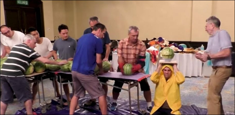 کولا لمپور : ملائیشن شہری نے ایک مرتبہ پھر دوست کے سر رکھے 50 تربوز ساٹھ سیکنڈ میں کاٹ کر عالمی ریکارڈ اپنے نام کرلیا۔