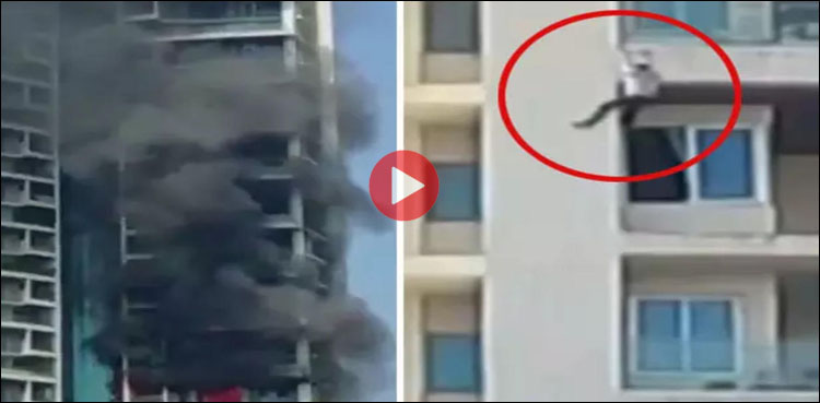 ممبئی میں کثیر المنزلہ عمارت میں آگ لگی تو ایک 30 سالہ شخص نے اپنی جان بچانے کے لیے 19 ویں فلور کی بالکونی سے چھلانگ لگادی جس کی سی سی ٹی وی فوٹیج سامنے آگئی۔
