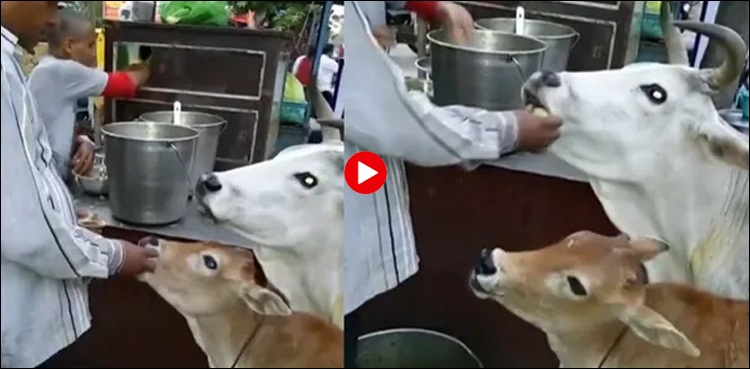 گزشتہ دنوں ایسی ہی ایک دلچسپ ویڈیو سوشل میڈیا پر وائرل ہورہی ہے جس میں گائے اور بچھڑے گھاس کی بجائے مزے سے ’گول گپے‘ کھا رہے ہیں۔