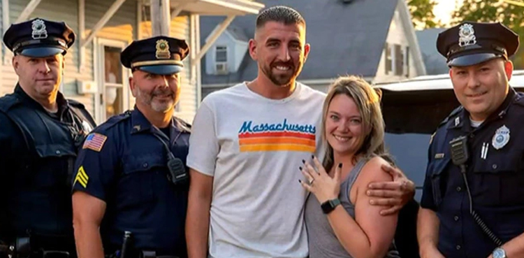 نوجوان کو ہتھکڑیاں لگا کر ریسٹورنٹ سے باہر لایا گیا۔ اس نے اپنی گرل فرینڈ کو پولیس حراست میں گلے لگایا اور پھر گھٹنوں کے بل بیٹھ کر اسے شادی کی آفر دی جسے لڑکی نے خوشی کے ساتھ قبول کیا۔