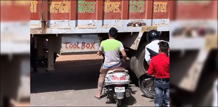 آئیے آپ کو ایسی ہی ایک ویڈیو دکھاتے ہیں جس میں ایک بھارتی شہری ٹریفک جام سے نکلنے کےلیے اپنے اسکوٹر ٹرک کے نیچے سے نکل رہا ہے حالانہ یہ طریقہ کار جان لیوا بھی ثابت ہوسکتا ہے لیکن اس کے باوجود کچھ اور شہری بھی اس کی پیروی کرتے ہوئے ٹرک کے نیچے سے نکل رہے ہیں۔