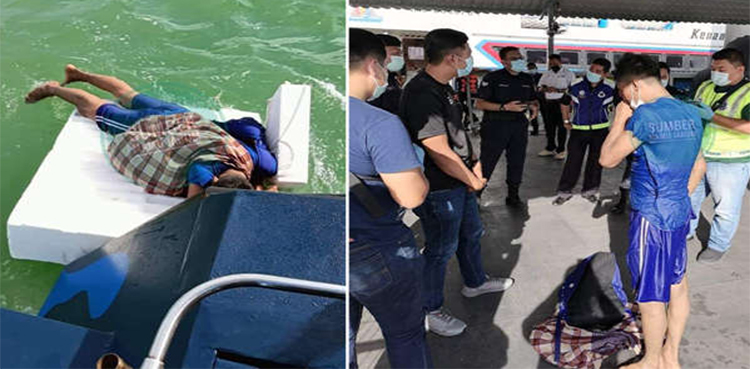 ملائیشین میڈیا کے مطابق 28 سالہ شخص کو اس وقت حراست میں لیا گیا جب وہ سمندر میں تیر کر نامعلوم سمت کی جانب جا رہا تھا کہ لوگوں نے اسے دیکھ کر پولیس کو اطلاع دی۔