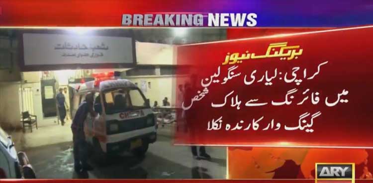 تفصیلات کے مطابق لیاری سنگولین کے قریب رات کے وقت فائرنگ سے ایک شخص ہلاک ہوا تھا، جس کے بارے میں معلوم ہوا ہے کہ وہ گینگ وار کا کارندہ ہے۔