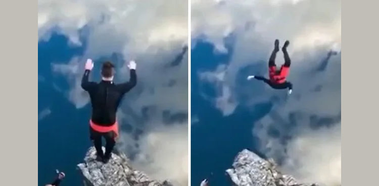 یہ ویڈیو ریڈٹ پر شیئر کی گئی تھی، اس میں دیکھا گیا کہ ایک شخص پہاڑ کی چوٹی سے ایک بڑی چھلانگ لگا رہا ہے، چوٹی سے نیچے بادلوں کو بھی دیکھا جا سکتا ہے جس سے یہ تاثر ملتا ہے کہ مذکورہ شخص آسمان میں چھلانگ لگا رہا ہے۔
