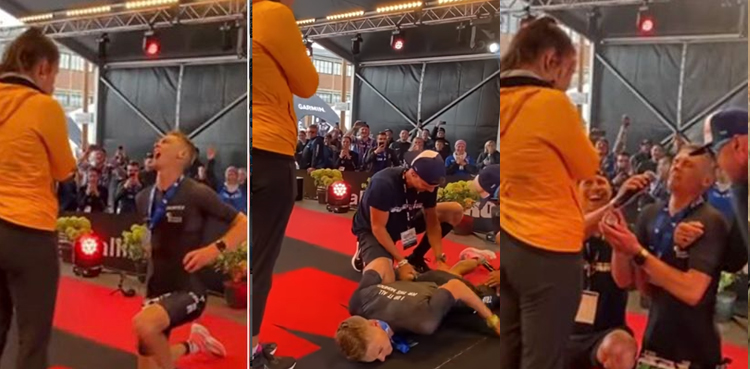 یورپی ملک ایستونیا میں آئرن مین مقابلوں میں شرکت کرنے والے ہسپانوی ٹرائی ایتھلیٹ نے ایونٹ کے بعد اپنی گرل فرینڈ کو پروپوز کرنے کا منصوبہ بنا رکھا تھا، لیکن آخری وقت پر بدقسمتی سے اس کا پلان کھٹائی میں پڑگیا۔