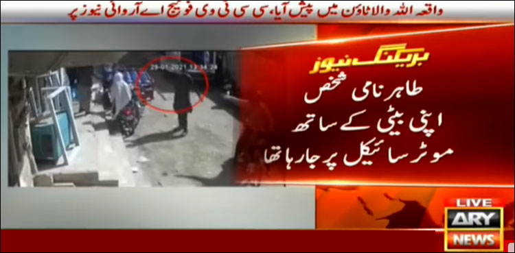 سی سی ٹی وی فوٹیج میں دیکھا جاسکتا ہے کہ شہری نے موٹر سائیکل روک کر اترنے کی کوشش کی تو ملزمان نے گولی ماری، پولیس کی جانب سے تاحال ملزمان کو گرفتار نہیں کیا جاسکا ہے۔