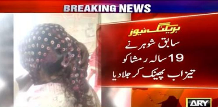 تفصیلات کے مطابق کراچی کے علاقے بلدیہ ٹاؤن میں لڑکی پر تیزاب پھینکنے کا واقعہ پیش آیا ، جہاں سابق شوہر نے 19 سالہ بیوی پر تیزاب پھینک دیا ، جس کے باعث لڑکی کے جسم کا 40 فیصد حصہ جھلس گیا، جس کے بعد لڑکی کو سول اسپتال کے برنس وارڈ منتقل کردیا گیا ہے۔