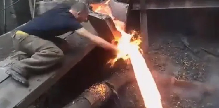 دنیا میں ایسے بہت سے لوگ ہیں جو مہم جوئی کو پسند کرتے ہیں اور شہرت کےلیے کسی بھی خطرے کو مول لیتے ہیں ایسے ہی ایک شخص کی ویڈیو سوشل میڈیا پر وائرل ہورہی ہے جو بیٹھ کر آرام سے ابلتے ہوئے لوہے سے کھیل رہا ہے۔