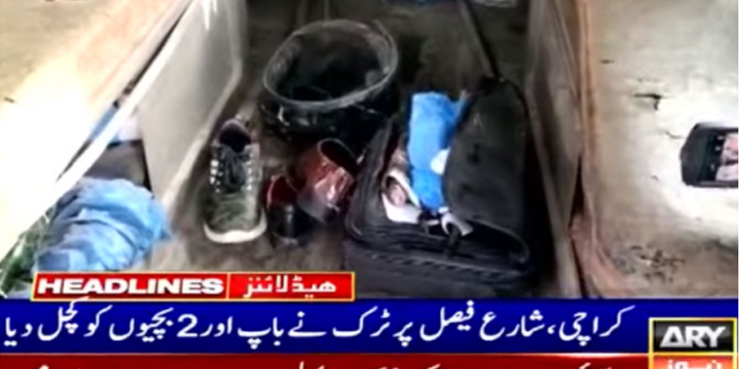 کراچی : شارع فیصل پرٹرک نے باپ اور دو بچیوں کو کچل ڈالا ، حادثہ مکسچرمشین ڈرائیورکی غلفت سےپیش آیا ، پولیس نے ڈرائیور کو گرفتار کرلیا۔