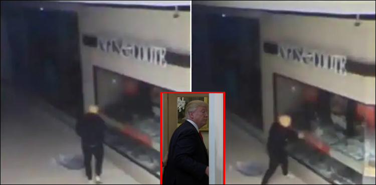 پولیس نے قریب میں لگے سی سی ٹی وی فوٹیج سے مدد حاصل کی جس میں دیکھا جاسکتا ہے کہ رات گئے امریکی صدر کی شکل والا شخص سنار کی دکان کے قریب آتا ہے اور ہتھوڑے کی مدد سے شیشہ توڑ کر واردات کے بعد فرار ہوجاتا ہے۔