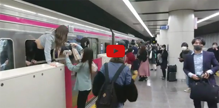 This viral video is showing people trying to escape the train during the attack are being blocked by the controversial barriers that were set up to prevent people from committing suicide/ falling on the tracks creating additional panic and injuries#Japan #Tokyo https://t.co/O7BjrBUFXf
