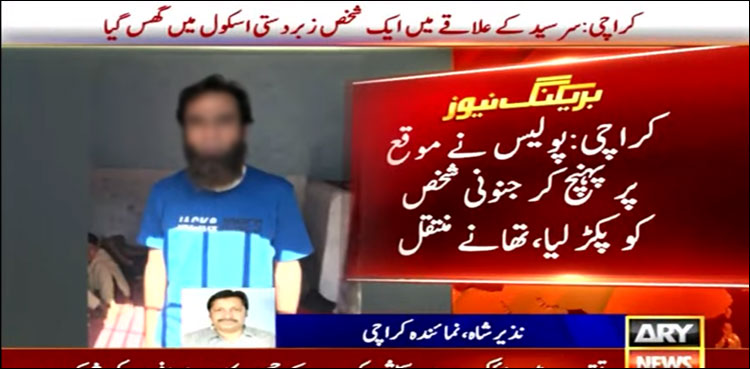 اے آر وائی نیوز کے مطابق کراچی کے سرسید ٹاؤن میں ایک شخص زبردستی اسکول میں گھس گیا، پولیس کا کہنا ہے کہ ملزم اسکول میں جاتے بچوں کے ساتھ زبردستی اندر داخل ہوا تھا۔