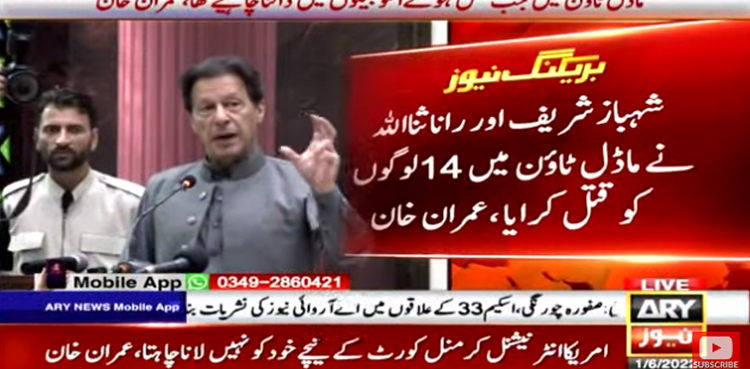 عمران خان کا کہنا تھا کہ 30سال سے جرم کرنیوالے آج اوپر آکر بیٹھ گئے ہیں، پاکستان جس دورسےگزررہاہےبہت کم ایساوقت آتاہے، یہ ملک کے لئے فیصلہ کن وقت ہے، جب نماز پڑھتے ہیں تو اللہ سے ایک ہی چیز مانگتے ہیں، اللہ سے دعا مانگتے ہیں کہ ہمیں عظمت کے راستے پر لگا۔