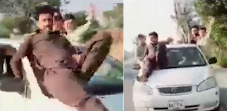 مردان میں چلتی گاڑی پر کرتب دکھانا ٹیکسی ڈرائیور کو مہنگا پڑ گیا۔