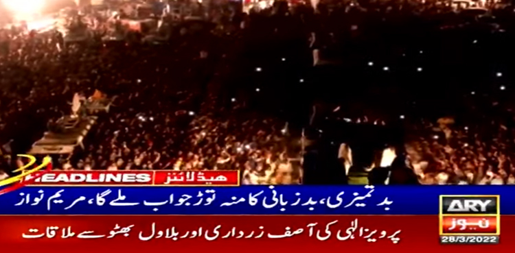 مریم نواز نے کہا کہاب جلسے کی ناکامی کا الزام بھی نواز شریف پر مت لگا دینا، پریڈ گراؤنڈ والوں یہاں آکر دیکھ لو جلسہ کیا ہوتا ہے، اسلام آباد والوں نے جلسے میں نہ جا کر عمران خان کی سیاست دفن کر دی۔