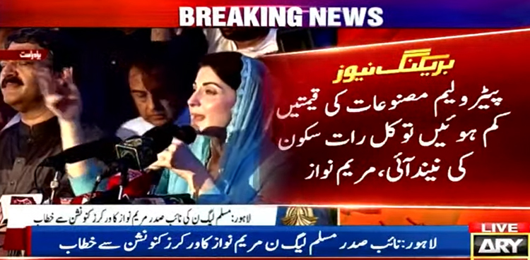مریم نواز نے کہا کہ عوام کو ریلیف ملنے پر ہم سب کو اطمینان ہوا ہے، پیٹرولیم مصنوعات کی قیمتیں کم ہوئی تو سکون کی نیند آئی، مشکل وقت ختم ہوگیا آنے والا ہر دن اچھی خبر لے کر آئے گا۔