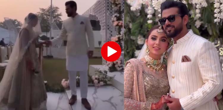 ویڈیو اور تصاویر میں دیکھا جاسکتا ہے کہ اس پرمسرت موقع پر انہوں نے گولڈن رنگ کا خوبصورت عروسی جوڑا زیب تن کیا ہوا ہے جبکہ ان کے شوہر نے اسی مناسبت سے شیروانی کا انتخاب کیا۔