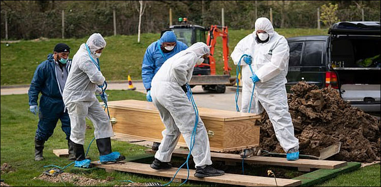 لندن : جنوبی لندن کے علاقے میں پہلی بارمسلمانوں کی اجتماعی نمازجنازہ اورتدفین کی گئی ، کورونا وائرس سے برطانیہ میں اب تک 8 ہزار958 افراد ہلاک ہوچکے ہیں۔