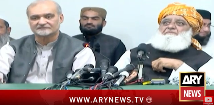 جے یو آئی (ف) کے سربراہ مولانا فضل الرحمان نے امیر جماعت اسلامی حافظ نعیم کے ساتھ مشترکہ پریس کانفرنس کرتے ہوئے کہا کہ ہمارا اختلاف جماعت اسلامی ، ن لیگ سے بھی ہے لیکن دشمنی تو نہیں، جماعت اسلامی اورجے یو آئی کا الیکشن کے معاملے پر ایسا اختلاف نہیں کہ جس پر اتفاق نہ ہوسکے۔