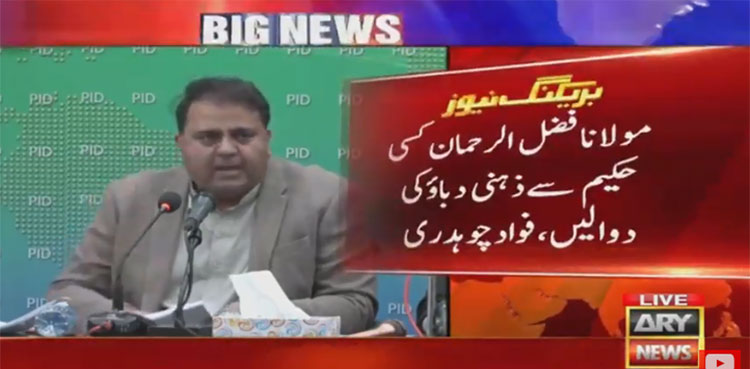 وفاقی وزیر فواد چوہدری نے کہا ہے کہ مولانا فضل الرحمان انتہائی اذیت کا شکار ہیں یہ کسی حکیم سے ذہنی دباؤ کی دوا لیں۔