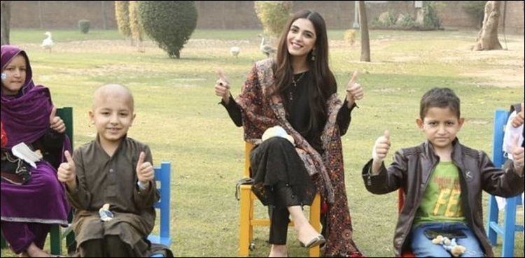 اداکارہ مایا علی بچوں میں کینسر سے بچاؤ کے عالمی دن کے موقع پر شوکت خانم اسپتال پہنچیں جہاں انہوں نے متاثرہ بچوں سے ملاقات کی۔