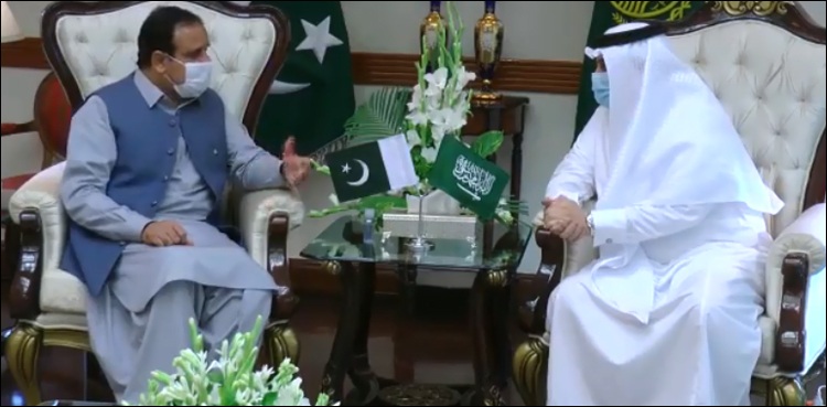ملاقات میں باہمی دل چسپی کے امور اور دو طرفہ تعلقات کے فروغ اور تعاون پر تبادلہ خیال کیا گیا، عثمان بزدار نے کہا کہ پاکستان کے عوام سعودی عرب کے ساتھ دلی اور روحانی وابستگی رکھتے ہیں، دونوں ممالک کے عوام میں اخوت اور بھائی چارے کا مضبوط رشتہ ہے، پاکستان کی تعمیر و ترقی میں سعودی حکومت کا تعاون لائق تحسین ہے۔