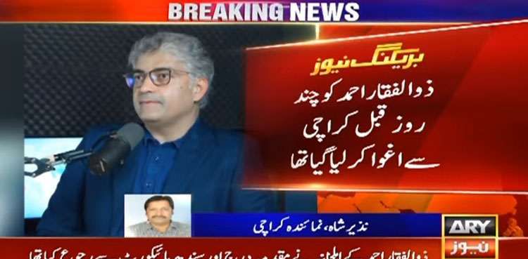 فیملی ذرائع کا کہنا تھا کہ ذوالفقار احمد کو کراچی کے علاقے ماڑی پور روڈ پر نامعلوم نقاب پوش مسلح افراد نے ڈبل کیبن گاڑی میں بٹھایا اور ساتھی سمیت ساتھ لے گئے۔