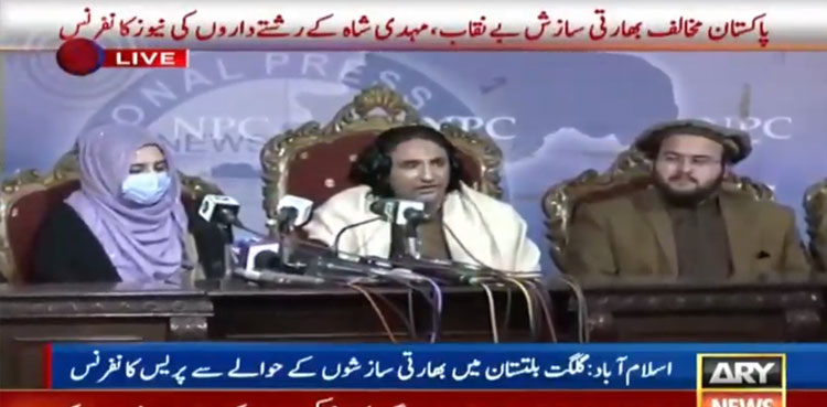 تفصیلات کے مطابق پاکستان مخالف بھارتی سازش بے نقاب کرنے والے مہدی شاہ کے رشتے داروں نے نیوزکانفرنس کی ، مہدی شاہ نےاعتراف کیا تھا بھارت سے پیسے لیکرپاکستان مخالف پروپیگنڈا کیا۔