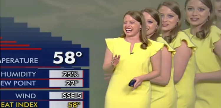 امریکا کے ایک مقامی نیوز چینل پر موسم کی خبریں سنانے والی ایک اینکر کو اس وقت خوشگوار حیرت کا سامنا کرنا پڑا خبریں پڑھتے پڑھتے اچانک اس کی تصویر کا حرکت کرتا عکس درجن سے زائد مرتبہ سامنے آگیا۔