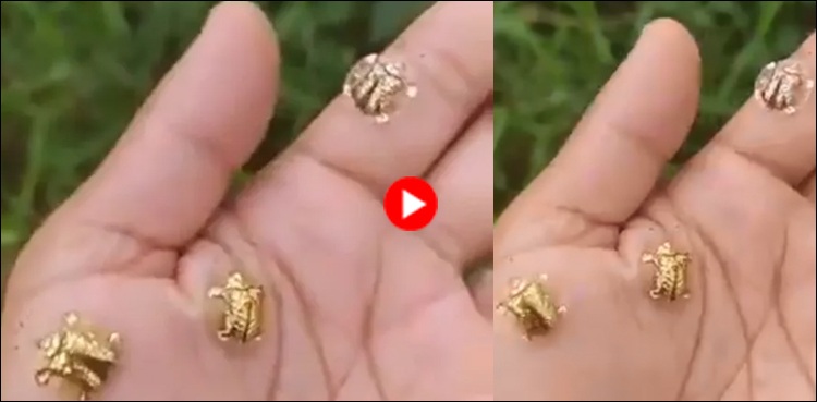 انٹرنیٹ پر شیئر ہونے والی 17 سیکنڈز کی ویڈیو میں ایک شخص کے ہاتھ میں سونے کی طرح چمکتے ہوئے زندہ بہونرے تھے جو پنجوں کی مدد سے چل بھی رہے تھے۔