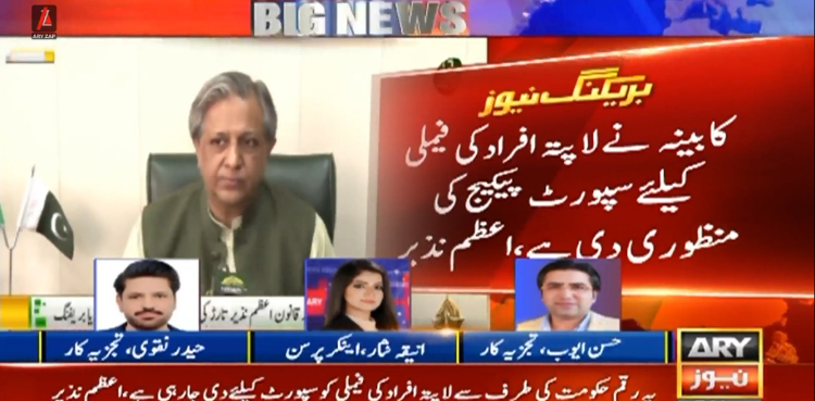حکومت کا کہنا ہے کہ وزیراعظم کی جانب سے امدادی پیکج کے ساتھ لاپتہ افراد کے اہلخانہ کے معاشی اقدام کیساتھ نادرا، پاسپورٹ اور وراثت کے قانونی مسائل کو بھی حل کیا جائیگا۔