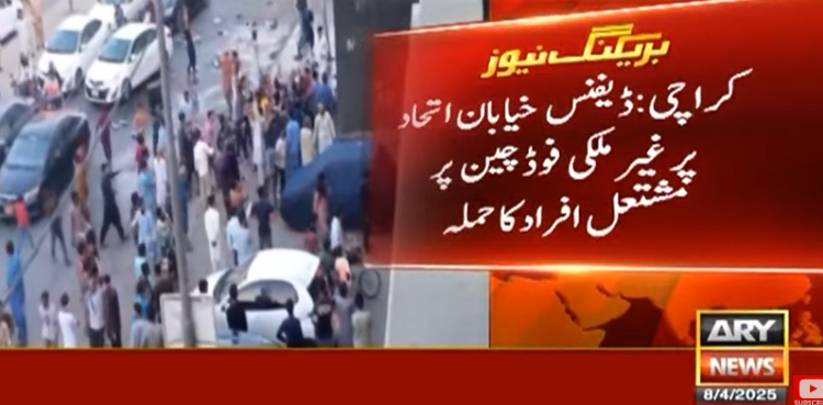کراچی ڈیفنس میں غیرملکی فوڈچین پر مشتعل افراد کا حملہ