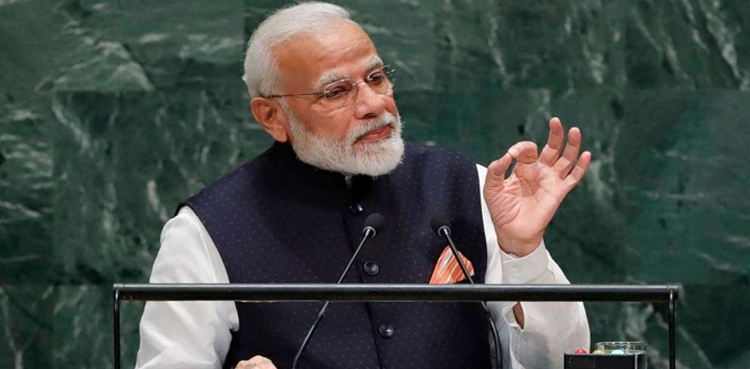 انہوں نے کہا کہ مودی نے اقوام متحدہ میں بھارتی کرونا ویکسین کی مارکیٹنگ کی ناکام کوشش کی۔