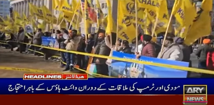 واشنگٹن ڈی سی میں بھارتی وزیر اعظم کی آمد اور مودی ٹرمپ ملاقات کے موقع پر کشمیری اور سکھ برادری نے اپنے مطالبات کے حق میں احتجاجی مظاہرہ کیا۔