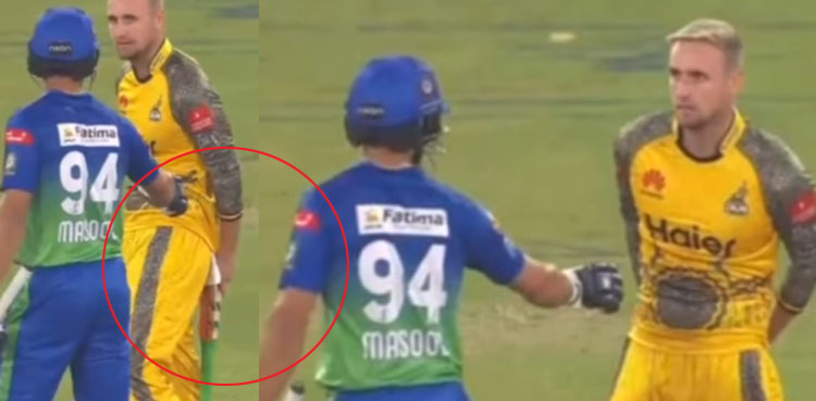 میچ میں اس وقت دلچسپ صورتحال پیدا ہوگئی جب غیرملکی کھلاڑی لیام لیونگ اسٹون نے رضوان کا بلا چھین لیا۔