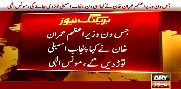 انہوں نے کہا کہ جس دن وزیراعظم عمران خان نے کہا اسی دن پنجاب اسمبلی توڑ دی جائے گی۔