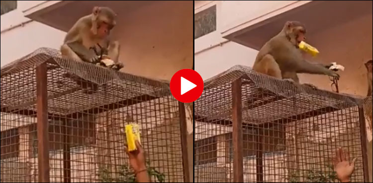 بندر کی ویڈیو سوشل میڈیا پر تیزی سے وائرل ہورہی ہے اور سوشل میڈیا صارفین کی جانب سے اس پر دلچسپ تبصرے بھی کیے جارہے ہیں۔
