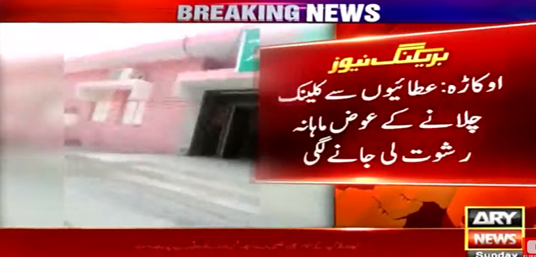 اے آر وائی نیوز کے مطابق اوکاڑہ میں ہیلتھ افسران کی جانب سے اتائیوں کی مبینہ پشت پناہی کی جا رہی ہے اور جعلی کلینک چلانے کے عوض ماہانہ رشوت لی جا رہی ہے۔