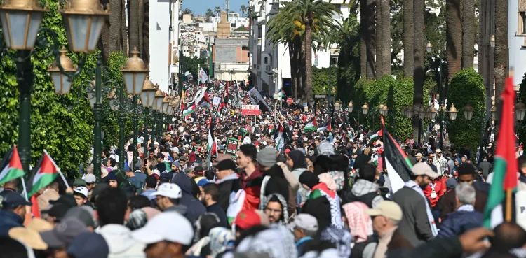 مراکش میں سیاسی میدان میں دسیوں ہزار مظاہرین اسرائیل کی مذمت اور فلسطینیوں کی حمایت کے اظہار کے لیے سڑکوں پر نکل آئے ہیں۔