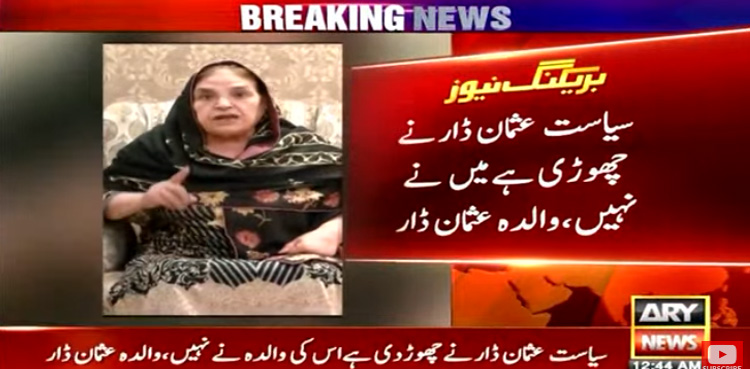 سیاست بیٹے نے چھوڑی ہے، میں نے نہیں، والدہ عثمان ڈار