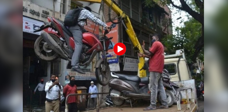 ٹریفک پولیس کے عملے کو نوپارکنگ سے آپ نے گاڑیوں کو لفٹر کے ذریعے اٹھاتے ہوئے دیکھا ہوگا لیکن کیا کبھی آپ نے یہ دیکھا ہے کہ رائیڈر کو موٹر سائیکل سمیت اٹھا لیا گیا ہو۔