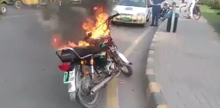سیکٹر نیاز کے علاقہ میں ٹریفک وارڈن عثمان نے موٹر سائیکل سوار کو ون وے کی خلاف ورزی پر روکا تو وہ سیخ پا ہوگیا اور اس نے اپنی موٹر سائیکل کو آگ لگائی اور فرار ہوگیا۔
